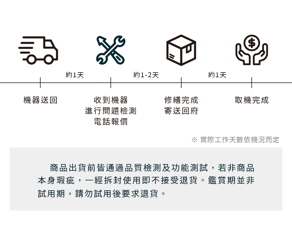 商品退回請以本公司寄送商品時所使用的外包材原封包裝,切勿將寄送資料以黏貼或書寫文字在原廠外盒上,原廠內外包材均屬商品的一部分,若有遺失、毀損或缺件,將影響您退貨權益。【退貨須知】