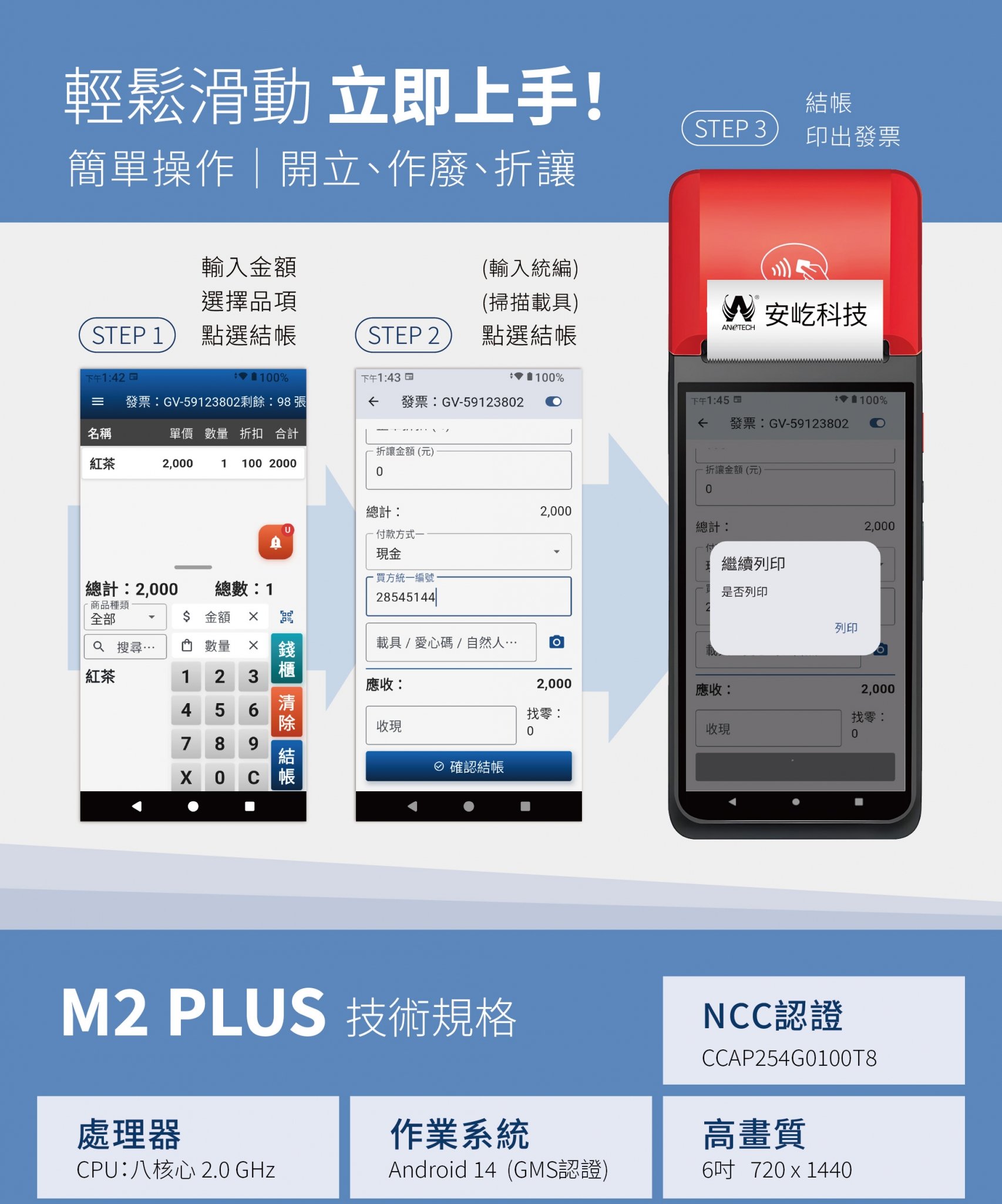 【M2 PLUS 手持式電子發票機 特色】