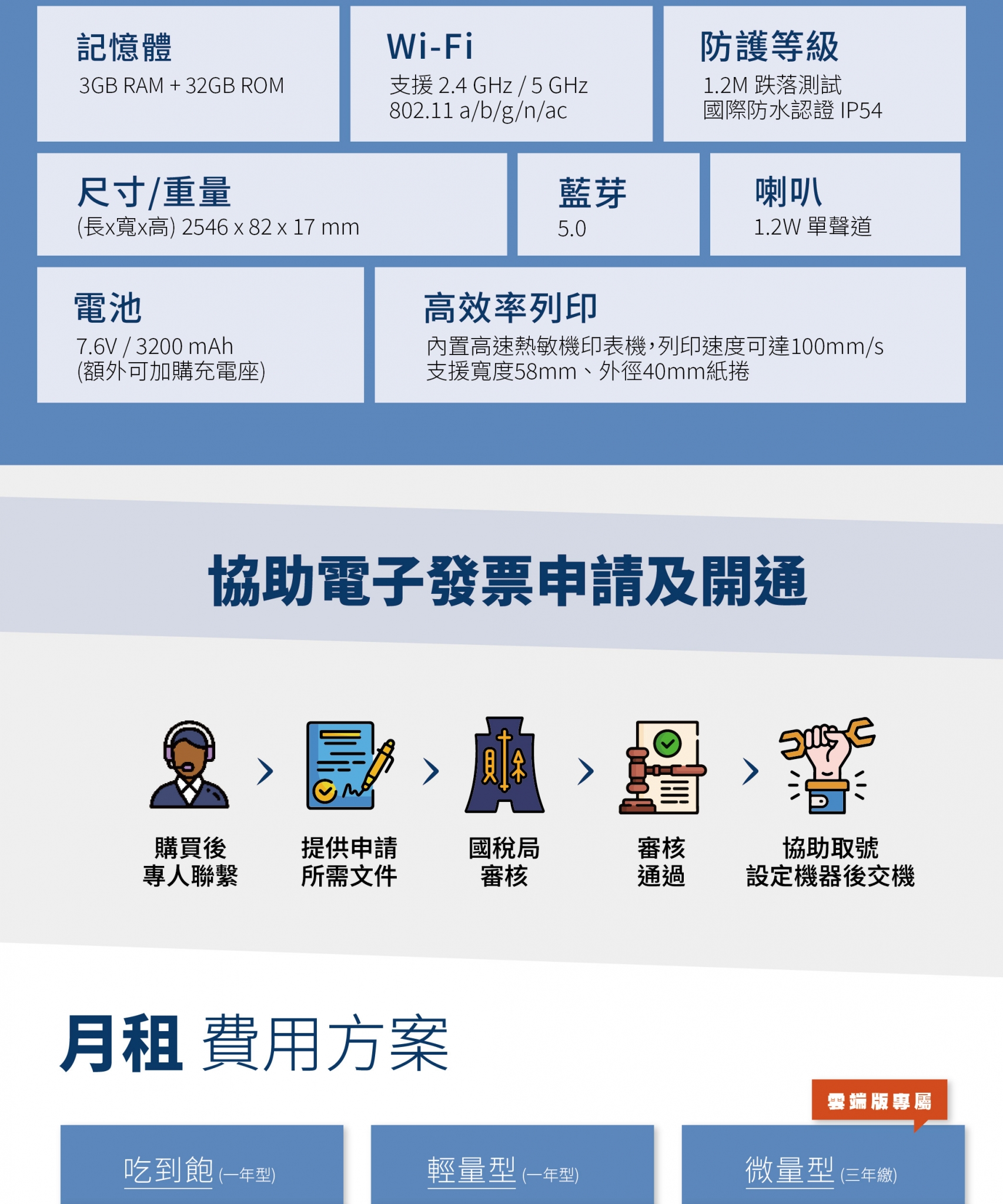 - 支援無線WIFI,即時上傳發票資料,手機開熱點分享也OK
